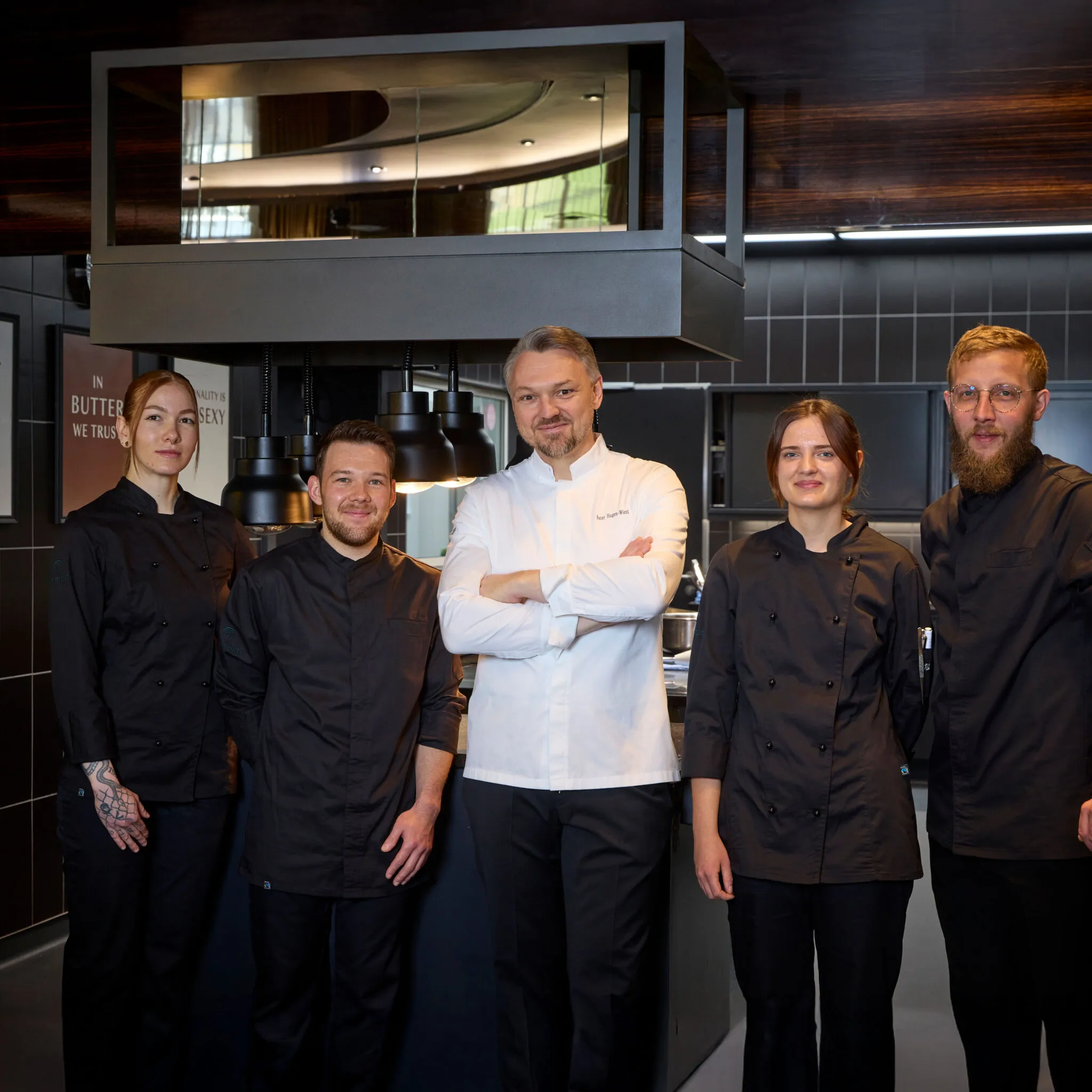 Les sous chefs Julian Schmid et Marc Doderer sont depuis plus de 7 ans aux côtés de Peter Hagen-Wiest. Avec le chef et toute l’équipe, ils endossent la responsabilité du choix des produits, des techniques et de la minutie dans l’exécution. Cette coopération de confiance est la base de la constance, et le gage d’une cuisine qui se développe tout en conservant une ligne claire.